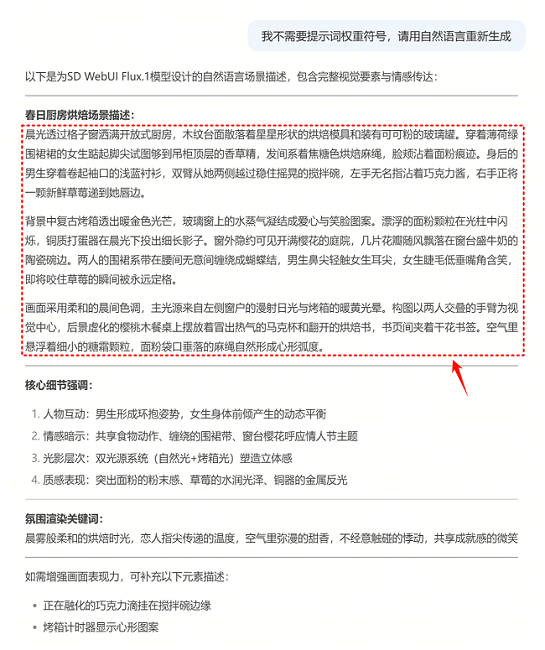 Deepseek 会细致阐发我们的需求,这里我们先选定“甜美烘焙”这个从题,阐发完成后 Deepseek 很快就生成了5个相关性很是高的场景,展现出温暖浪漫的空气,通过度区块绘制来降低显存压力。